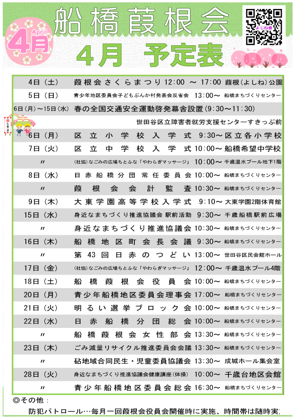 船橋葭根会2026年令和8年3月の予定を掲載させていただきます。